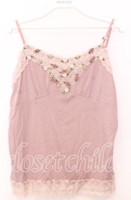 axes femme / 巻き薔薇キャミソール ピンクベージュ O-25-11-14-035-AX-TO-IG-ZT343