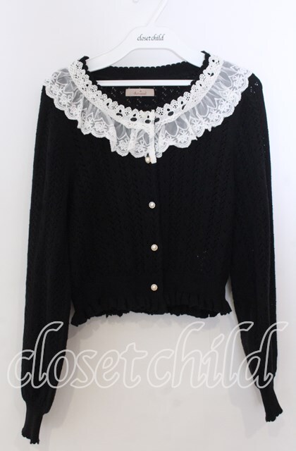 Amavel / ロマンティックレースすかし編みカーディガン F クロ O-25-11-14-057-CA-TO-OW-OS