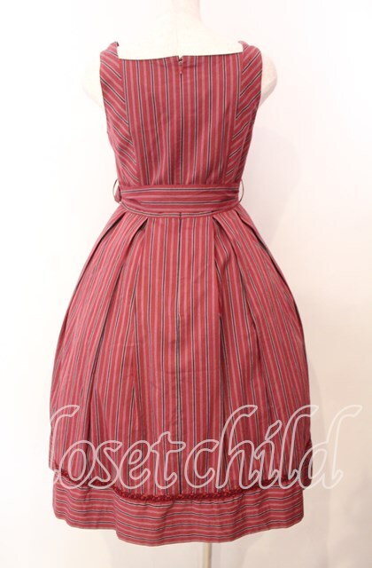 Victorian maiden / レジメンタルストライプリボンワンピース ワイン O-25-11-14-008-CL-OP-OW-OS