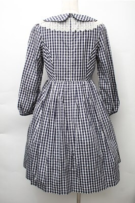 Emily Temple cute / 襟レースギンガムワンピース 紺x白 S-25-11-13-064-ET-OP-HR-ZS