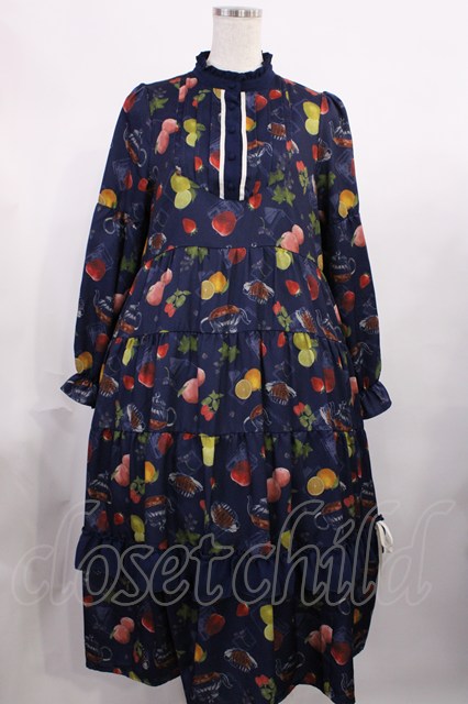 axes femme / フルーツティ柄ティアードワンピース M ネイビー H-25-11-15-011-AX-OP-NS-ZH