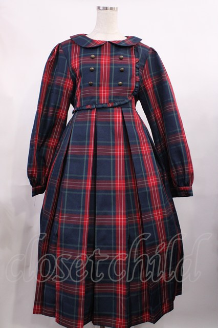 FLC / MINA*タータンチェックワンピース L グリーン H-25-11-15-013-LO-OP-NS-ZH