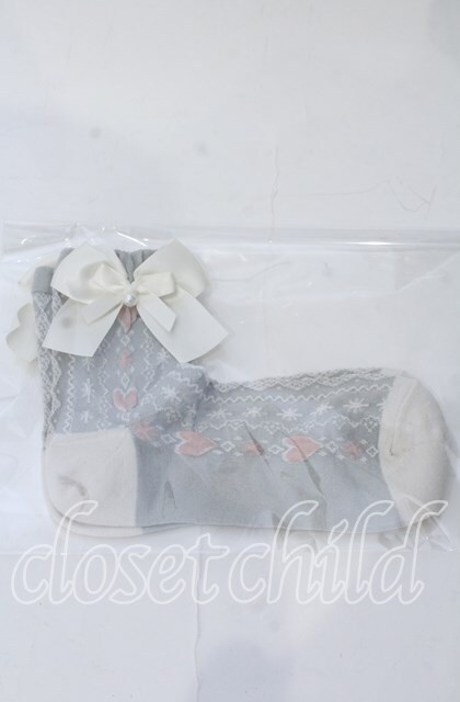 m petit by misako / ハートレース柄リボン付きクルーソックス グレー O-25-11-12-1006-LO-ZA-OW-OS