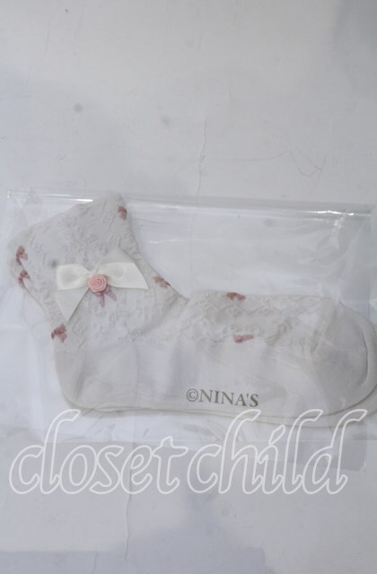 m petit by misako / プチバラ&リボン付きクルーソックス シロ O-25-11-12-1026-LO-ZA-OW-OS