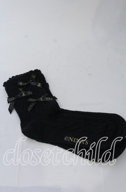 m petit by misako / ロゴリボンクルーソックス クロ O-25-11-12-1029-LO-ZA-OW-OS