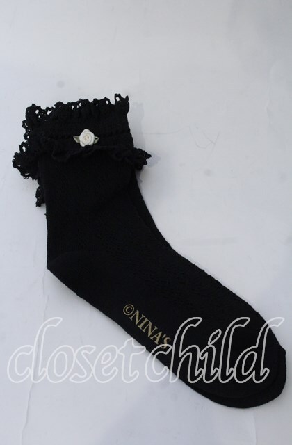 m petit by misako / プチバラ付きクルーソックス クロ O-25-11-12-1032-LO-ZA-OW-OS