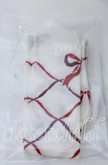 m petit by misako / サンリオコラボオーバーニーソックス シロ×ピンク レースアップ O-25-11-12-1038-LO-ZA-OW-OS