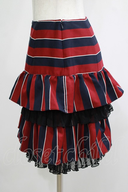 Emily Temple cute / レジメンタルフリルスカート ボルドー H-25-11-20-030-ET-SK-KB-ZH
