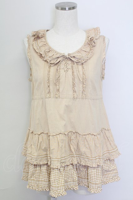 PINK HOUSE / ギンガムチェックリボンノースリーブブラウス ブラウンX白 T-25-11-15-013-LO-BL-SA-ZI [戻る]