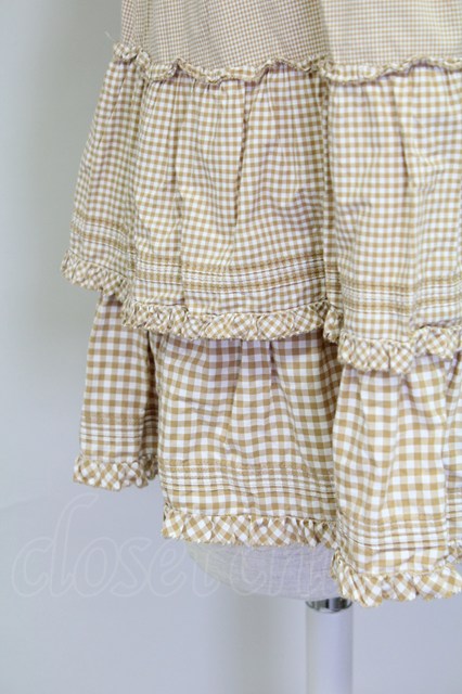 PINK HOUSE / ギンガムチェックリボンノースリーブブラウス ブラウンX白 T-25-11-15-013-LO-BL-SA-ZI