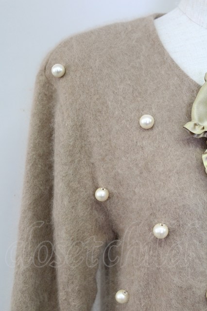 PINK HOUSE / パール&リボンデザインニットカーディガン ブラウン T-25-11-15-017-LO-TO-SA-ZI