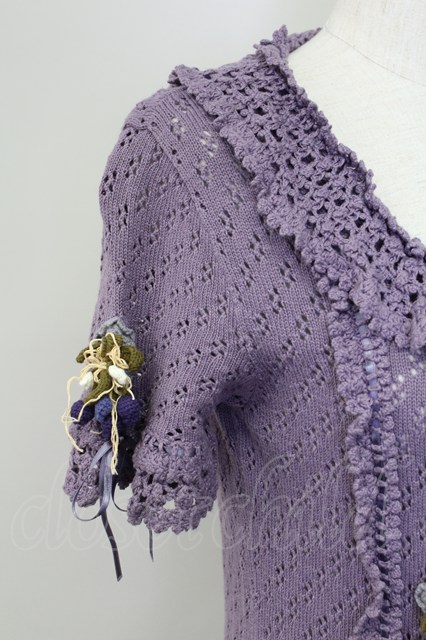 PINK HOUSE / ブルーベリーモチーフ半袖ニットカーディガン パープル T-25-11-15-026-LO-TO-SA-ZI