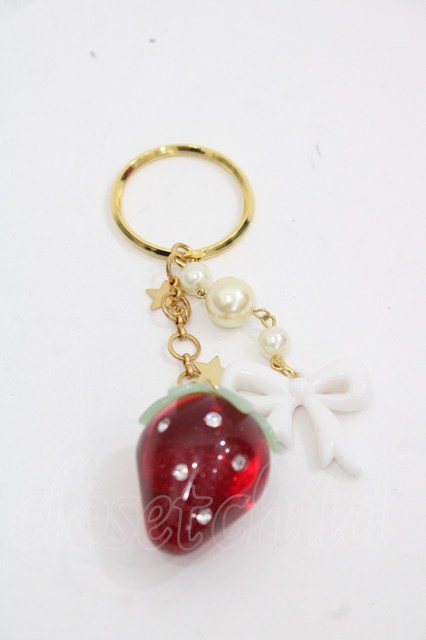 BABY,THE STARS SHINE BRIGHT / キャンディーストロベリーとリボンのキーホルダー 赤X白Xゴールド I-25-11-14-106-BA-AC-SA-ZI