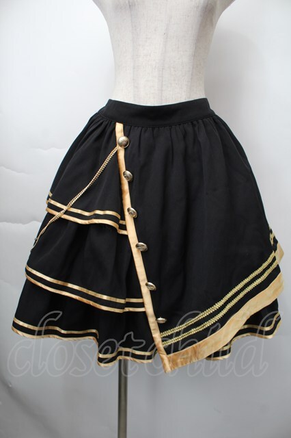 To Alice / ミリタリースカート 黒xゴールド S-25-11-10-052-LO-SK-HR-ZS