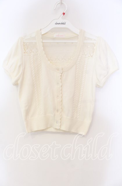 LIZ LISA / チュール透かし半袖カーディガン アイボリー O-25-11-15-069-LO-TO-IG-OS
