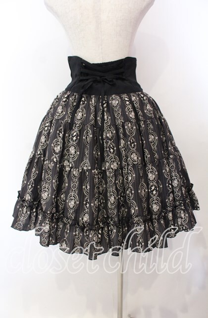 Innocent World / バラと小鳥のストライプスカート M クロ O-25-11-15-011-IW-SK-IG-OS