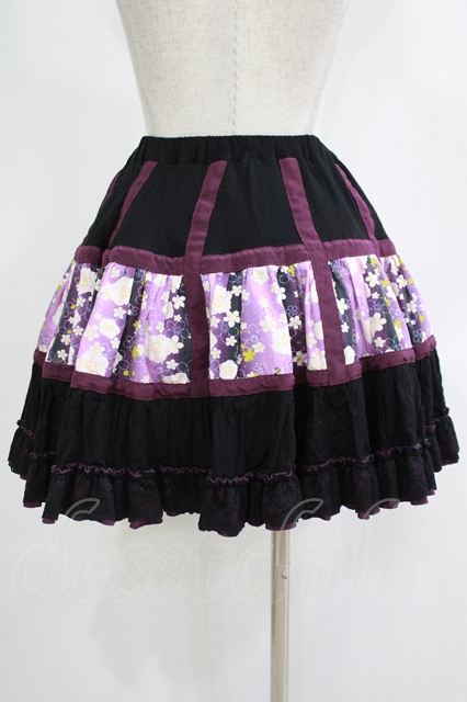 gouk / 和柄切替スカート 黒×紫 H-25-11-21-1016-GO-SK-KB-ZH