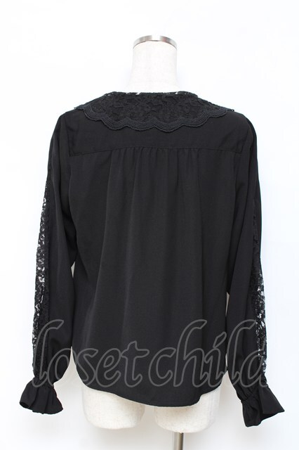 an another angelus / レース襟ピンタックブラウス 黒 Y-25-11-15-061-CA-BL-SZ-ZY