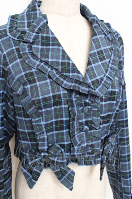 axes femme kawaii / タータンチェックジャケット ブルー Y-25-11-15-065-AX-JA-AS-ZI