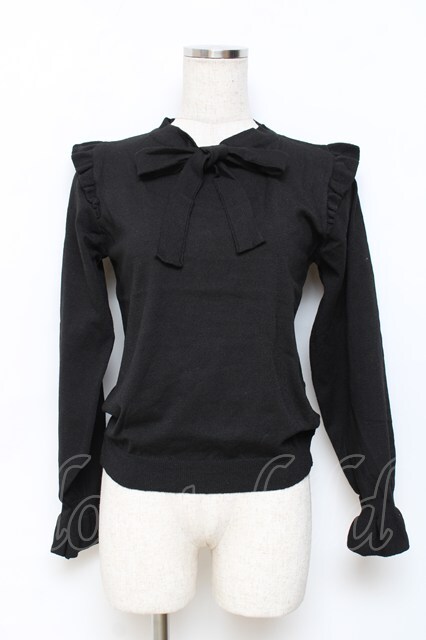 axes femme / ボウタイニットプルオーバー 黒 Y-25-11-15-070-AX-TO-SZ-ZY