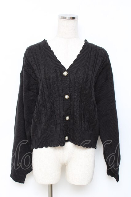 axes femme / パールボタンニットカーディガン 黒 Y-25-11-15-071-AX-TO-SZ-ZY