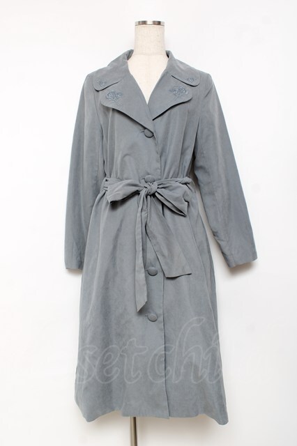 an another angelus / 薔薇刺繍ピーチスキンコート ブルー Y-25-11-15-108-CA-CO-SZ-ZY