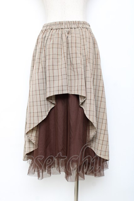 axes femme / チェック柄バッスル風スカート ブラウン Y-25-11-15-132-AX-SK-SZ-ZI [戻る]