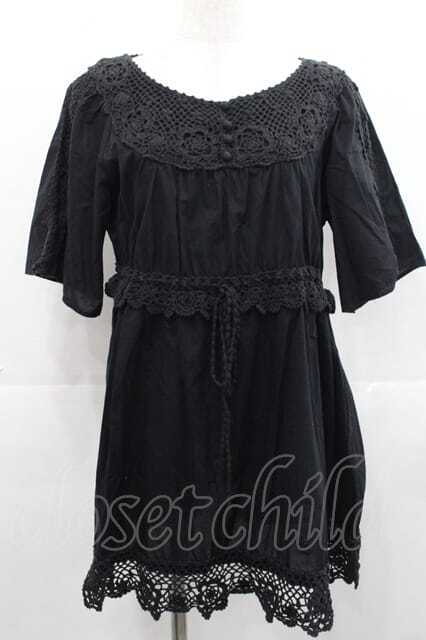 INGEBORG / 編み薔薇レース半袖チュニック 黒 I-25-11-15-019-LO-BL-SA-ZT1227K