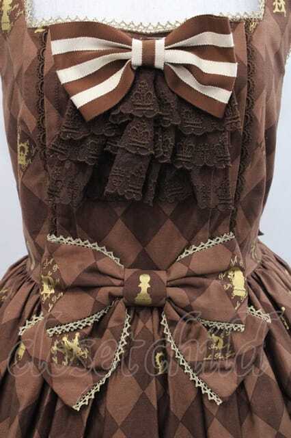 Angelic Pretty / Chess Chocolate ジャボ付ジャンパースカート ブラウン I-25-11-15-037-AP-OP-SA-ZI