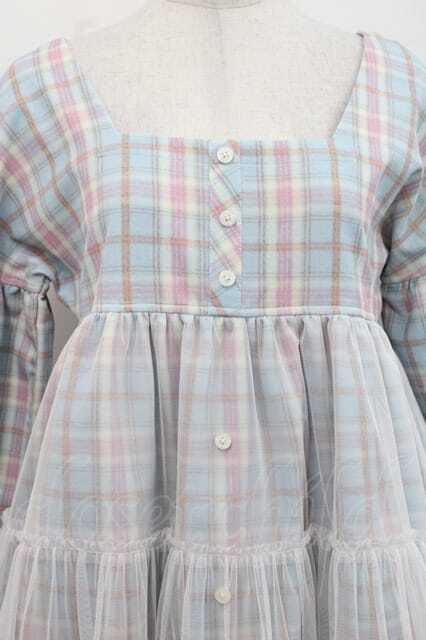 Jnorii Bonbon22 / チェック柄チュール付きワンピース S サックスXピンクチェック I-25-11-15-049-LO-OP-SA-ZI