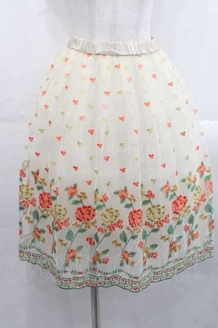 Jane Marple Dans Le Salon / 刺繍チュールスカート ベージュ I-25-11-15-080-JM-SK-SA-ZI