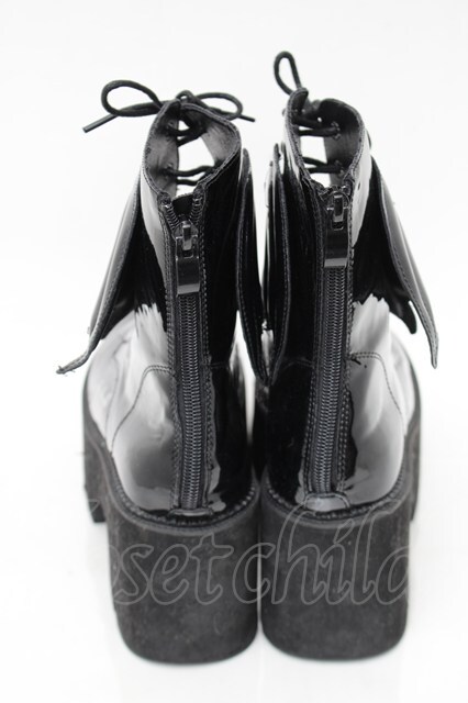 NieR Clothing / 羽根付きエナメル厚底ブーツ 黒 S-25-11-14-007-PU-SH-HR-ZS