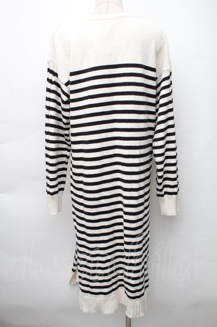 axes femme / 肩ボタンデザインボーダースリットワンピース オフx黒 S-25-11-14-034-AX-OP-HR-ZS