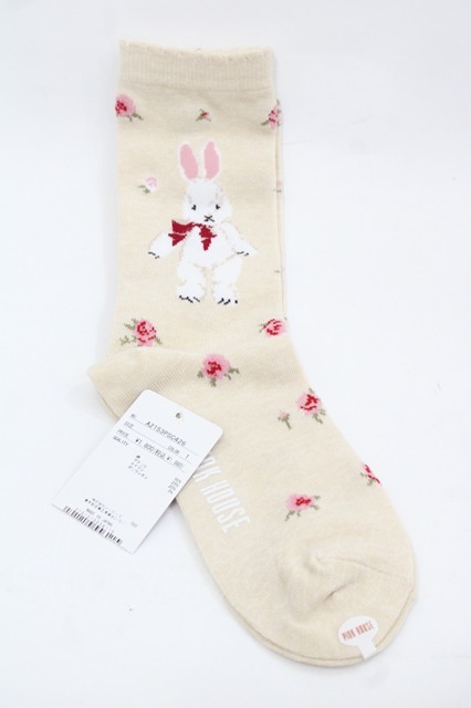 PINK HOUSE / バラ園うさぎソックス アイボリー I-25-11-15-111-LO-ZA-SA-ZI