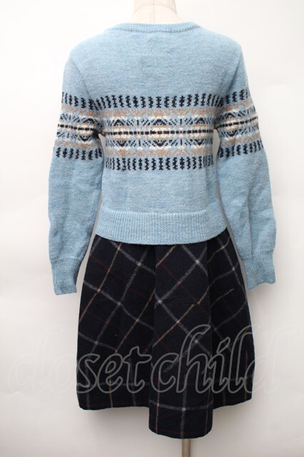 Jane Marple Dans Le Salon / 切替ジャガードニットワンピース サックスx紺 S-25-11-14-036-JM-OP-AS-ZS