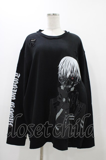 QOOZA / 東京喰種×QOOZA金木研 ダメージスウェット ブラック H-25-11-23-034-0-TO-KB-ZH