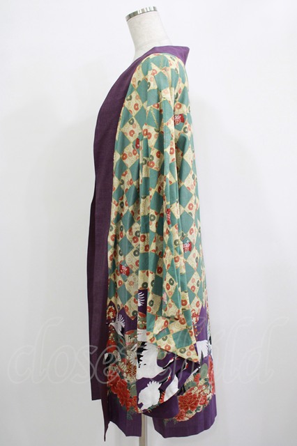 metamorphose / 百花繚乱〜まほろばの舞〜着物風羽織り Free 緑青×紫 H-25-11-22-1017-ME-JA-NS-ZH