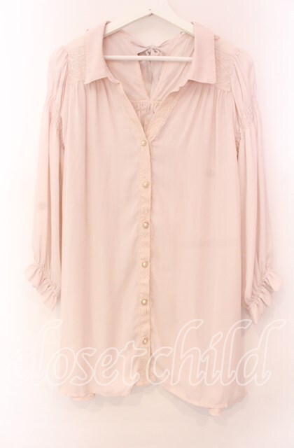 axes femme / バックプリーツシャツチュニック 薄ピンク O-25-11-17-052-AX-BL-IG-OS [戻る]