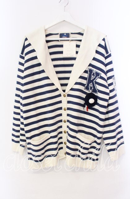 KETTY / 帽子ブローチボーダーセーラーカーディガン アイボリー×ネイビー O-25-11-17-017-EL-TO-IG-OS [戻る]