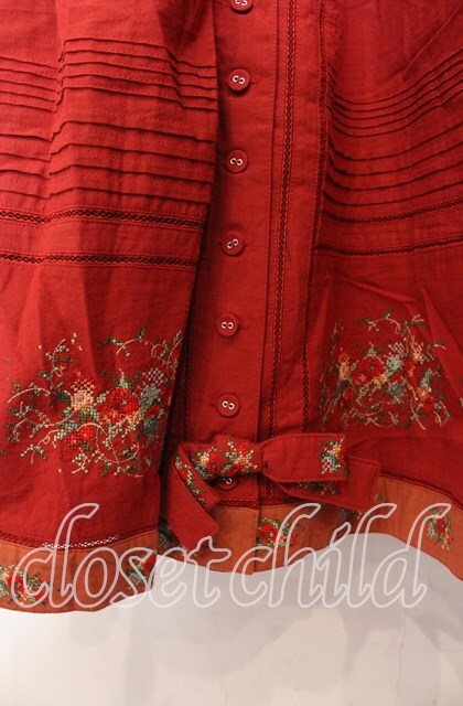 PINK HOUSE / 裾刺繍ジャンパースカート アカ O-25-11-17-025-LO-OP-IG-OS [戻る]