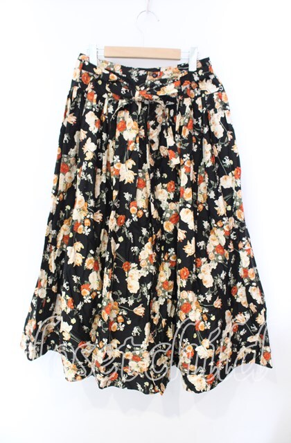 WONDERFUL WORLD / ローズブーケ裾タックスカート クロ O-25-11-17-010-LO-SK-IG-ZT523