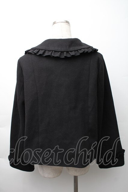 axes femme kawaii / フリルカラーショートコート 黒 S-25-11-16-027-AX-CO-HR-ZS