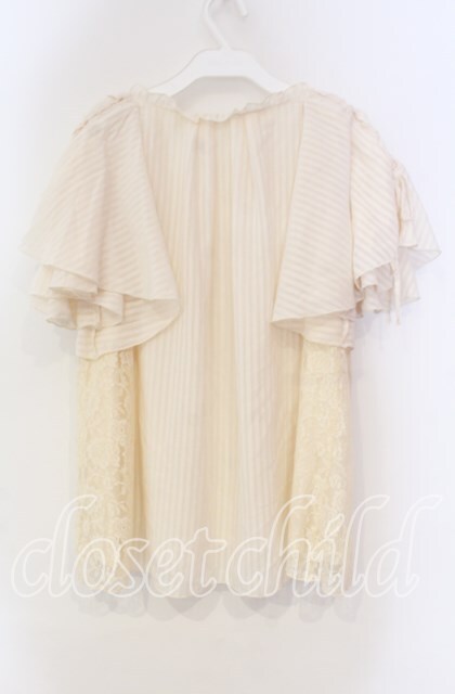 axes femme / 袖レースアップストライプブラウス M アイボリー O-25-11-18-084-AX-BL-IG-OS