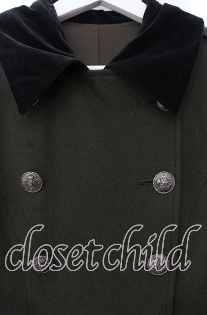 Belette / 別珍切り替えロングコート グリーン×ブラック O-25-11-18-047-LO-OP-IG-OS