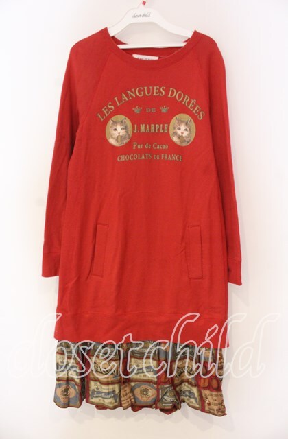 Jane Marple / Chocolat classiqueのトレーナーワンピース M アカ O-25-11-18-078-JM-OP-IG-OS