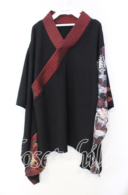 Qutie Frash / 2023年プレミアム 宵鶴着物チュニック ブラック×レッド O-25-11-18-035-QU-TO-IG-OS