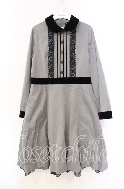 Jane Marple / コンパクトツイルとベルベットのワンピース M グレー O-25-11-18-081-JM-OP-IG-OS