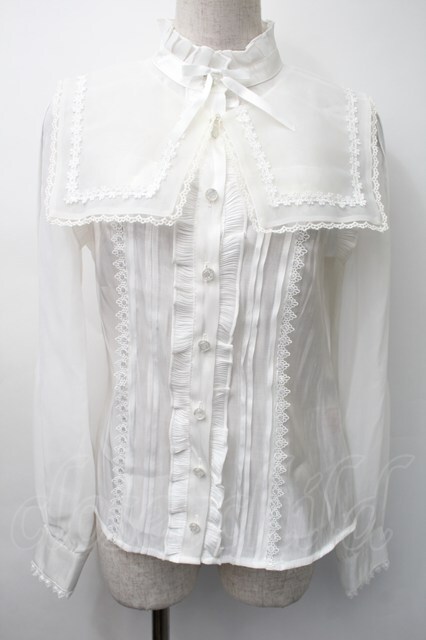 To Alice / セーラー襟サテンブラウス 白 S-25-11-18-017-LO-BL-HR-ZS
