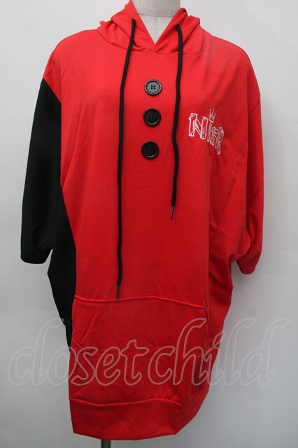 NieR Clothing / 刺繍バイカラープルオーバー 黒x赤 S-25-11-18-025-PU-TO-HR-ZS