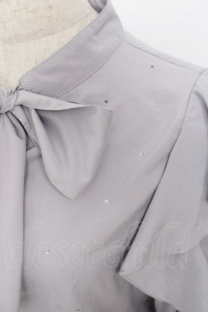 evelyn / ラインストーンリボンブラウス グレー Y-25-11-22-094-LO-BL-SZ-ZY